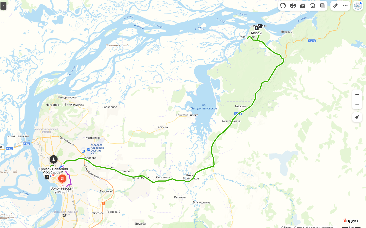 1.Автопереезд от Хабаровска - с. Сикачи-Алян».