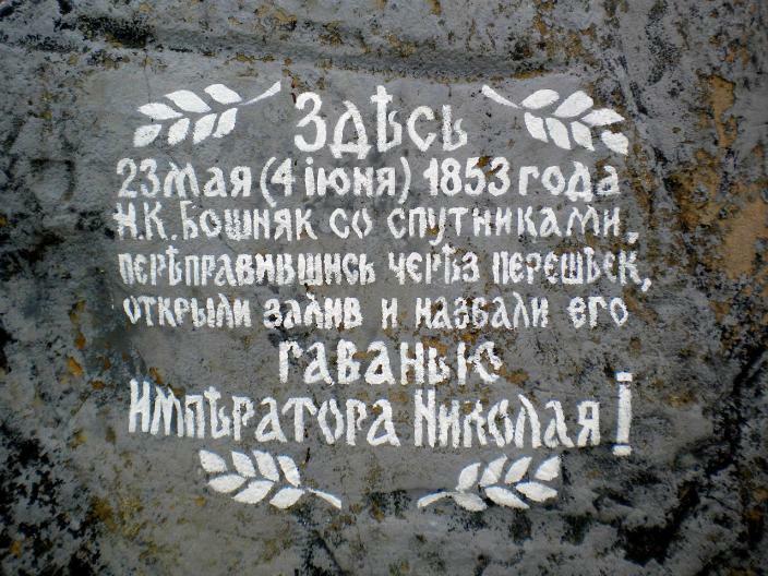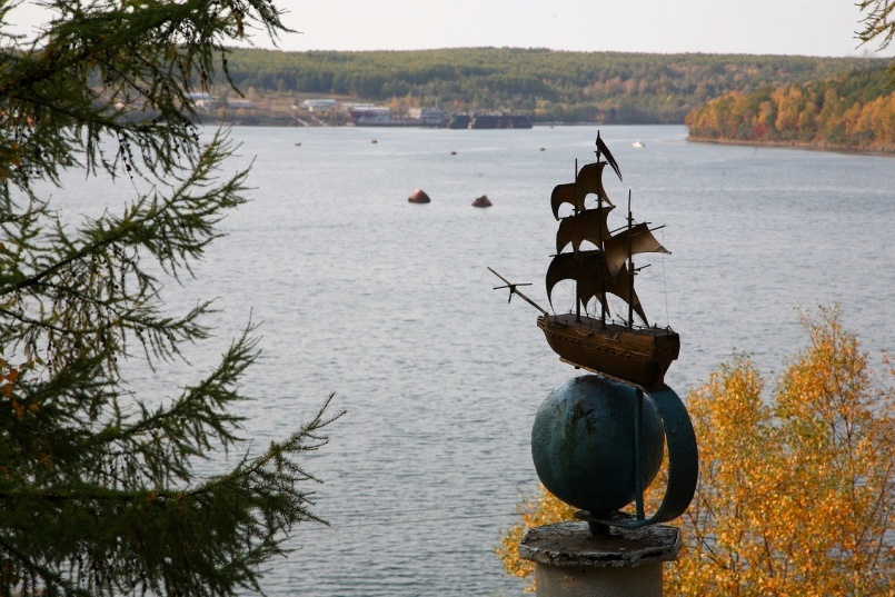 Навершие памятника фрегата «Паллада» с видом на место его затопления