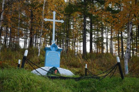 Памятный крест на предполагаемом месте кладбища погибших от цинги во время зимовки 1853-1854 гг