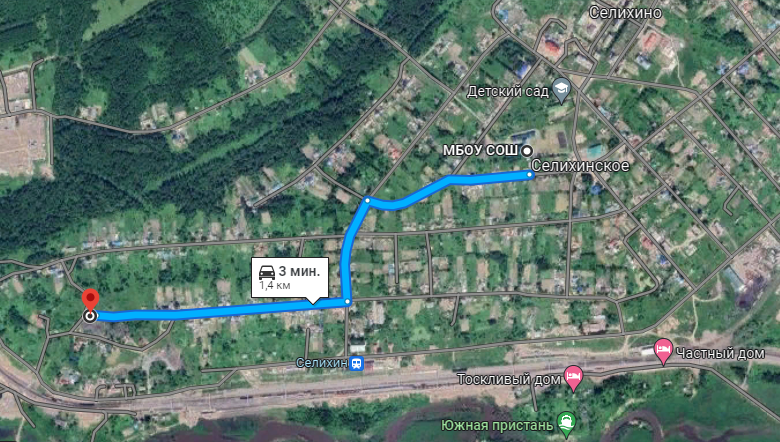 Маршрут проходит по улицам сельского поселения. Начальная точка маршрута - МБОУ СОШ с.п. Селихино. Конечной точкой маршрута является район сопки Шаталова. Сопка Шаталова – самая высокая точка сельского поселения. С нее открываются виды на значимые объекты поселения.