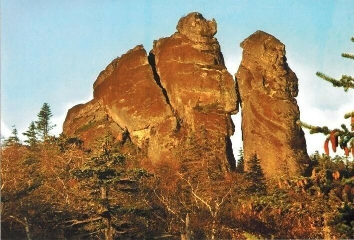 гранитные столбы различной формы высотой от 12 до 70 метров, расположенные на вершине и склонах сопки высотой 885,8 метра. Отдельные группы скал имеют названия: Шаман- камень, Стены, Чаша, Церковь, Корона. До сих пор не утихают споры о происхождении Амурских столбов. Их человекоподобные формы, огромные размеры и ровные углы заставляют задуматься о многом.